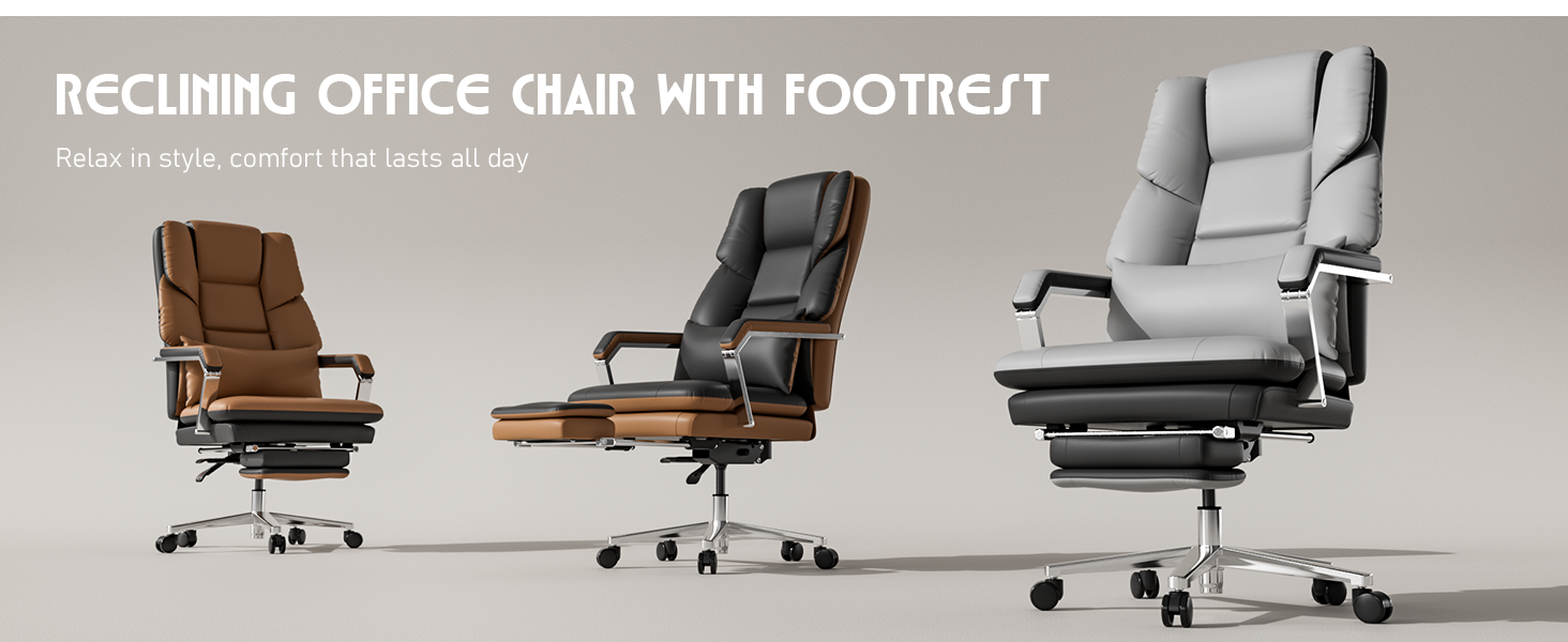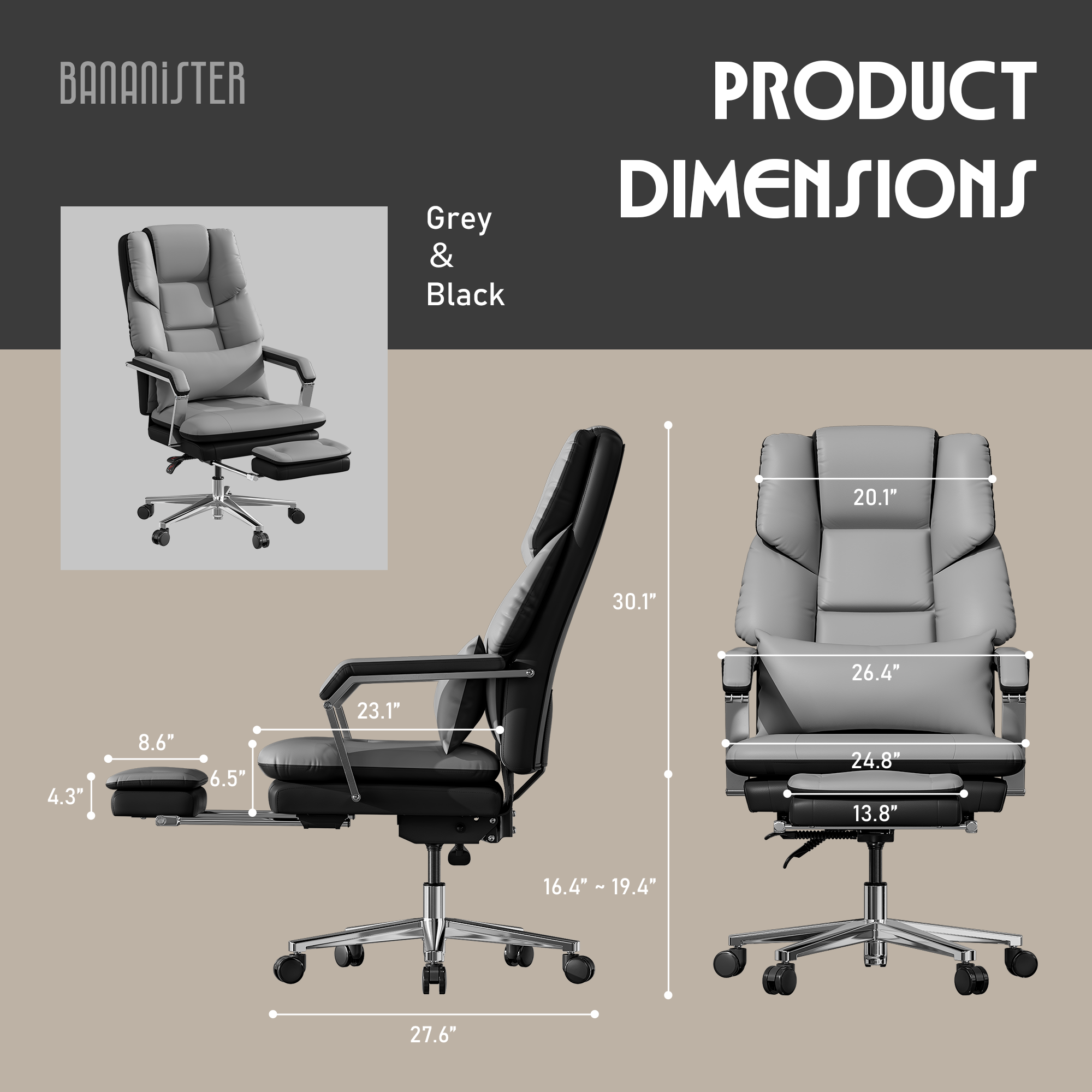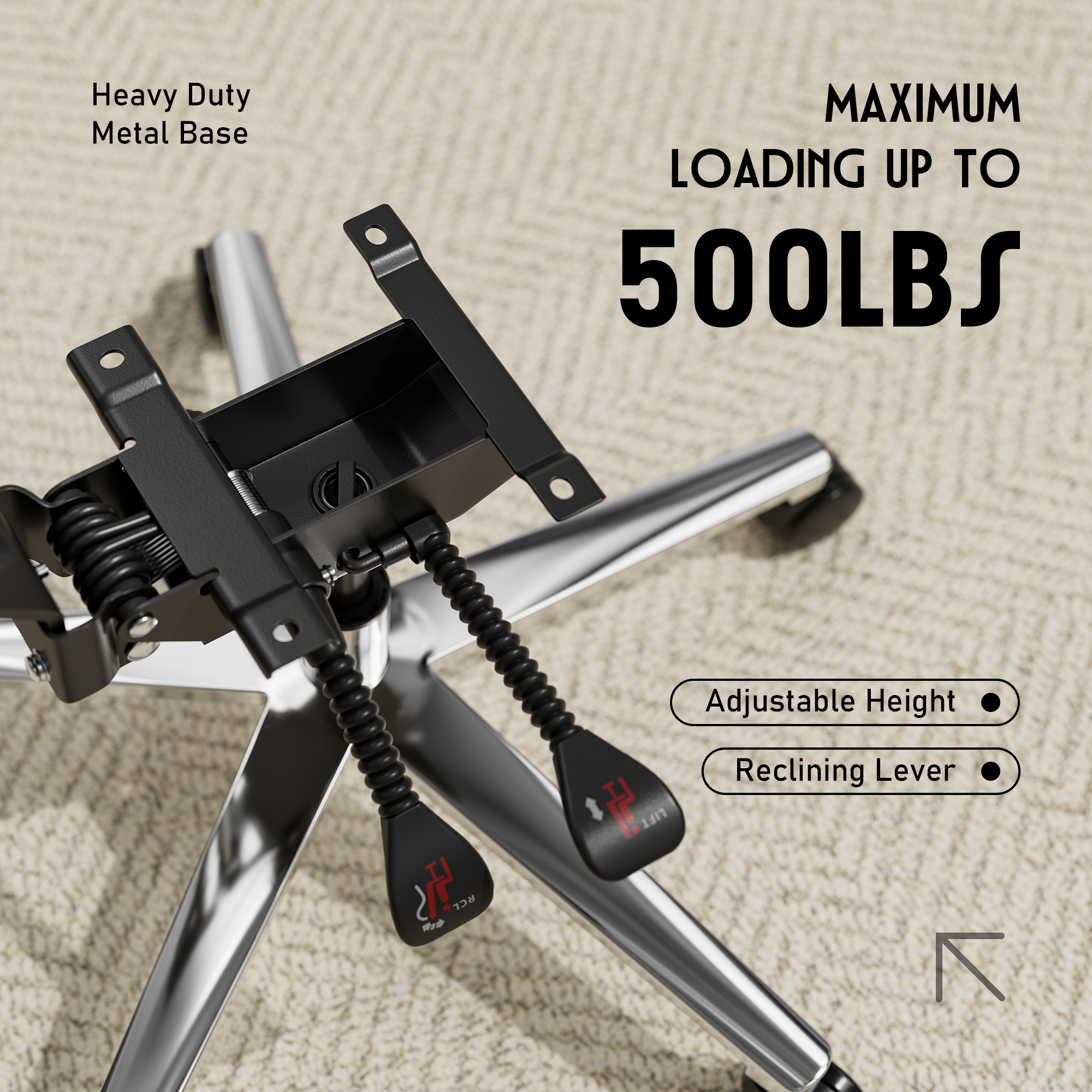 A sturdy oversized office chair for big & tall users featuring a breathable double-layered seat, 100°-140° reclining backrest with retractable footrest, adjustable lumbar support, silent 360° PU casters, and effortless 20-minute assembly for all-day comfort.